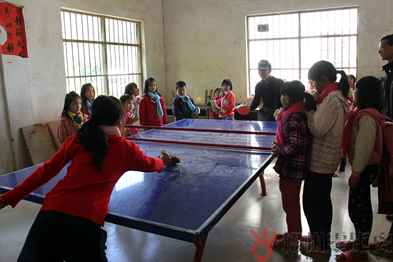 ????當(dāng)天上午,經(jīng)過近兩個(gè)小時(shí)的顛簸,記者與零距離網(wǎng)友代表一行4人到達(dá)了楊梅小學(xué)。由于道路比較窄,車子無法開到學(xué)校教學(xué)樓前,楊梅小學(xué)的同學(xué)便早早來到路邊等候,幫助記者搬運(yùn)慰問品。“哇,有羽毛球!”看到愛心物資里面有羽毛球,同學(xué)們都高興地歡呼起來。來到教室后,記者分別給同學(xué)們送上了筆盒和圍巾,孩子們拿到禮物后都很高興,不停地說著“謝謝”。隨后記者、網(wǎng)友還和同學(xué)們進(jìn)行了乒乓球和羽毛球比賽,學(xué)校內(nèi)一片歡樂氣氛。