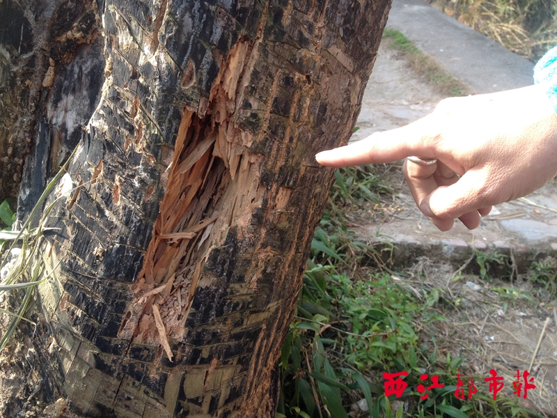????新興村委負責清潔工作的莫先生表示,他們本想自行處理枯樹,但由于樹木太過高大,而且砸到了民房,樹木旁邊又有許多電線,單靠村委的人力物力難以解決問題。村委也曾聯系了消防部門,但消防部門表示樹木的修建、砍伐,屬梧州市市政和園林管理局管理,因而并沒有派人前來處理。