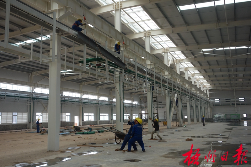 ??? 1月27日,梧州進口再生資源加工園區重點項目駱駝華南蓄電池年產600萬千伏安時新廠建設一期已完成注塑廠房、蓄電池生產廠房建設,工人們正在加緊進行內部水電氣管網的架設。