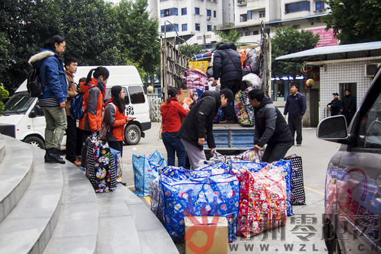 當天上午8時,梧州零距離網站編記和熱心網友、市民合力把愛心物資搬運上車。