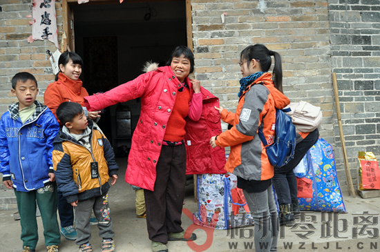 霍鴻飛回來后,馬上帶著兒子招呼記者一行,并親自為每一個人遞上熱茶。“各位辛苦了,謝謝你們的捐助。”隨后,眾人把米、面、衣服等愛心物資交給霍鴻飛,并幫助她穿上捐贈的羽絨服。剛開始,霍鴻飛還有點不好意思,但看到衣服穿上很合身,她靦腆又滿意地笑了;眾人還幫孩子們穿上了送來的童裝。原本怯生生的孩子在穿上新衣之后,臉上多了幾分喜氣,在屋里跑來跑去不愿意脫下來。記者離開時,霍鴻飛帶著幾個孩子向記者揮手告別,有一個孩子還專門跑到家門口看著記者一行人離開。