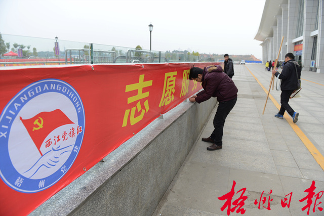????為加強(qiáng)春運(yùn)服務(wù)保障,全市“西江黨旗紅”黨員義工隊(duì)伍將全面開(kāi)展專項(xiàng)志愿服務(wù)活動(dòng)。在梧州南站、梧州火車站、東出口等客流集中的地方,有關(guān)部門設(shè)置了志愿服務(wù)站點(diǎn),由黨員義工和志愿者分批輪值,為旅客提供服務(wù)。李鴻榮 攝