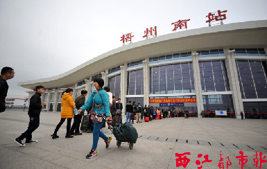 ????梧州火車站由于目前車次密度不大,加上南廣鐵路分流部分旅客,旅客運送量比去年同期有較大下降。梧州火車站相關負責人介紹,南廣鐵路開通后,梧州火車站短途旅客明顯減少,長途旅客保持穩定。春運首日,梧州火車站長途旅客略有增加,但還未進入高峰。