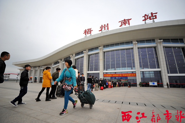 ????記者從南寧鐵路局梧州車務段了解到,春運首日,梧州南站和梧州火車站分別發(fā)送旅客3623人次和1059人次。由于離校學生流基本在春運前出行完畢,較為集中的返鄉(xiāng)客流高峰主要出現(xiàn)在春節(jié)長假前一周,兩個火車站的節(jié)前客流最高峰將出現(xiàn)在2月14日、15日(即農(nóng)歷臘月廿七日、廿八日)。