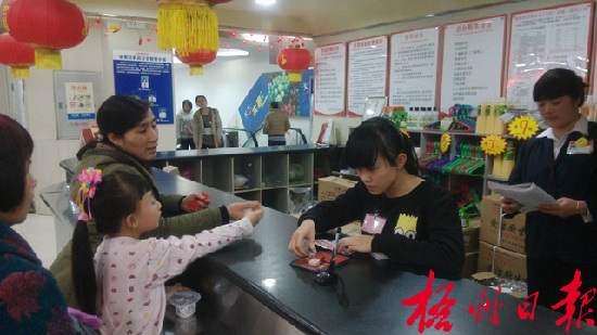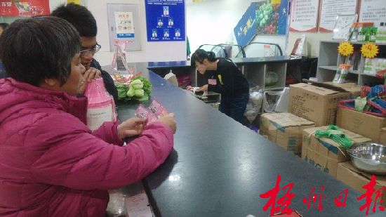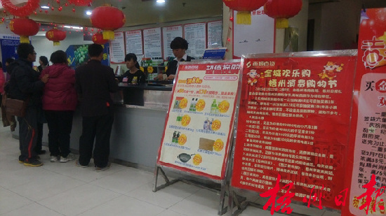在南城百貨錦泰店,服務臺的工作人員為市民兌換抽獎券。