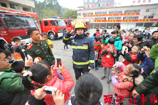 ????整個參觀采風活動中,消防官兵巧妙地將一些日常預防火災、火場逃生自救知識、正確報火警等內容穿插在其中。不知不覺中,孩子們也接受了一次直觀生動的消防安全教育。 |