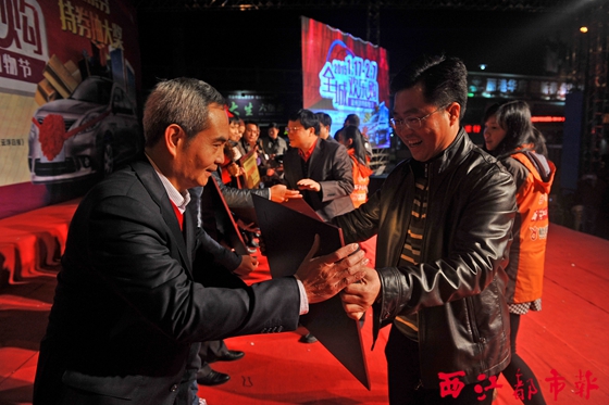 在消費購物節(jié)閉幕式上,與會領(lǐng)導(dǎo)為購物節(jié)銷售先進單位代表頒獎。 本報記者 何鎏/攝