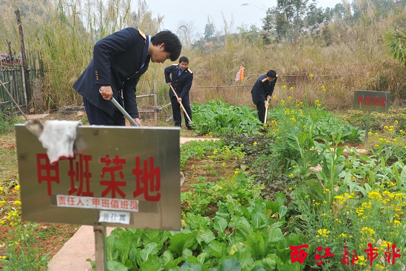 ????由于交通不便,位置偏僻,小站的人要外出買菜是一件極其麻煩的事。于是,幾名進站前沒有種過菜的漢子們無師自通,利用業余時間開荒種地搞起了小種養,過上了自給自足的日子,也為平淡枯燥的日子增添了許多樂趣。 |