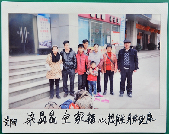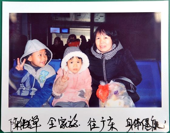 2月9日,本報工作人員將拍立得照片贈送來自桂林的蔣麗萍小朋友一家。