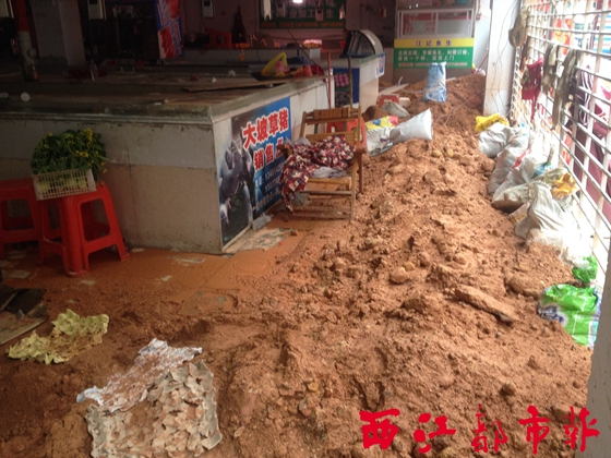????“你看我的遮陽傘,是從黃泥堆中翻出來的,上面滿是泥巴。”鐘先生說。當(dāng)時(shí),在該商行販賣蔬菜的另外一名商戶剛剛從黃泥堆中清出自己的青菜。“你看,菜上面都是泥土,根本賣不出去了。”該商戶無奈地說。