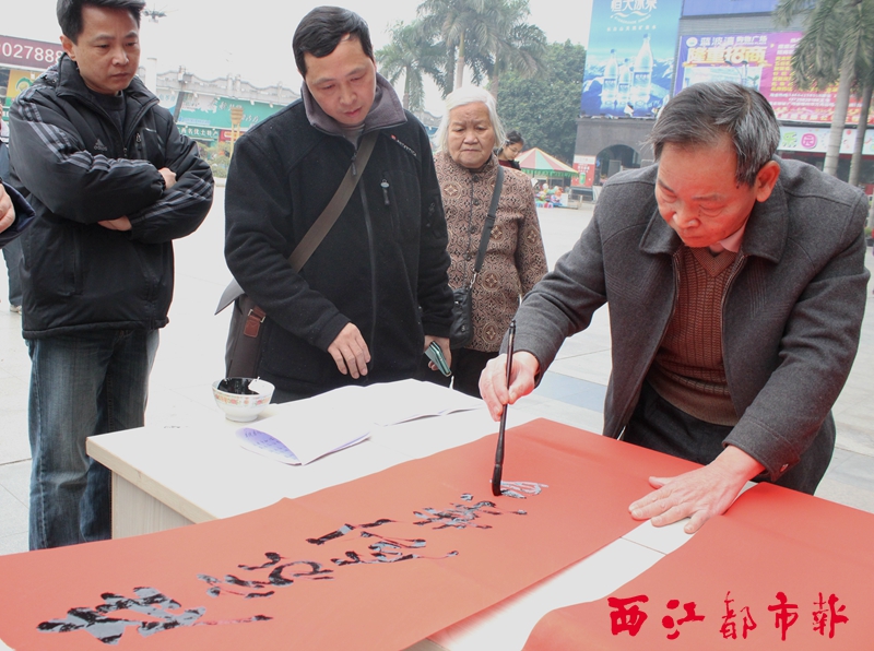 ????現場另一邊的寫春聯活動也熱熱鬧鬧,一旁的空地上已經擺放著二十多副墨跡未干的春聯,負責免費幫居民們寫對聯的是云龍社區的兩位書法愛好者。正巧路過的市民譚錦燕聽說可以免費幫寫春聯,也來瞧瞧,“這里有免費春聯,自己不用像往年那樣去買春聯了!”她手上拿著一副新鮮出爐的春聯,滿臉笑容地將對聯小心翼翼擺放在地面上風干。