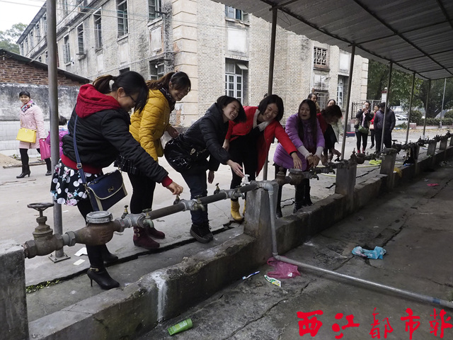 看到當年每天使用的水龍頭,老同學們觸景生情。