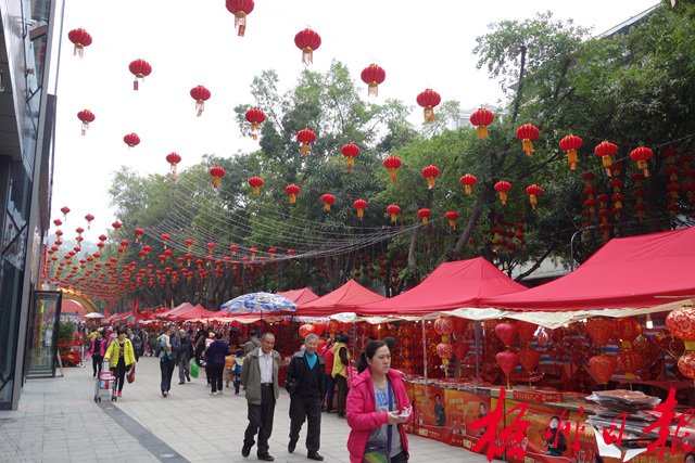 ????2月16日,大學路和旺城廣場已懸掛起大紅燈籠、彩旗、彩球等裝飾布景,營造出濃厚的節日喜慶氛圍。今年,除市政園林、各城區等主要部門之外,不少大型商場、房地產開發企業也加入營造節日氛圍的行列,爭相斗艷吸引人氣。梁萍 攝