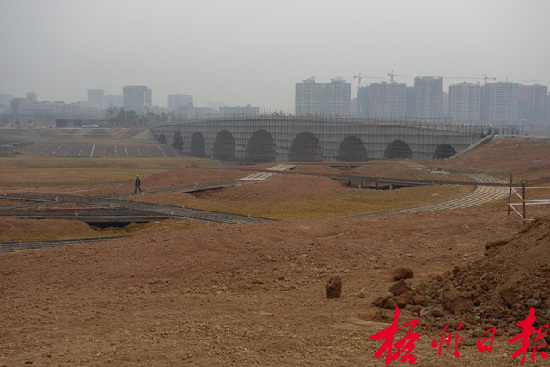 ????目前,園博園各個項目正加快建設,跨湖橋、游客服務中心等標志性建筑的主體已經成型。祝琳 攝