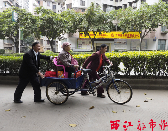 ????由于大家平時都忙著上班,而彭錦志姐弟幾個又擔(dān)心母親長期待在家里不利于身體健康,因此大家約定節(jié)假日誰有空,誰就帶母親外出。因為母親不能走遠(yuǎn)路,還會暈車,因此大家買來一臺人力三輪車,作為老母親外出的“專座”。