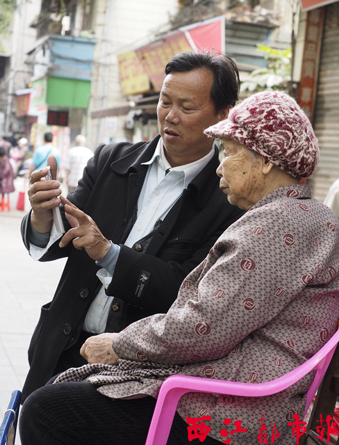 ????“這是新建成的大商場,里面很多東西賣。”彭錦志陪著母親走進(jìn)一家大型商場,邊走邊介紹,就像當(dāng)年自己還是小孩時,媽媽帶著自己到商場買年貨一樣。看到母親很開心,彭錦志還用侄女送的智能手機不斷為母親拍照。