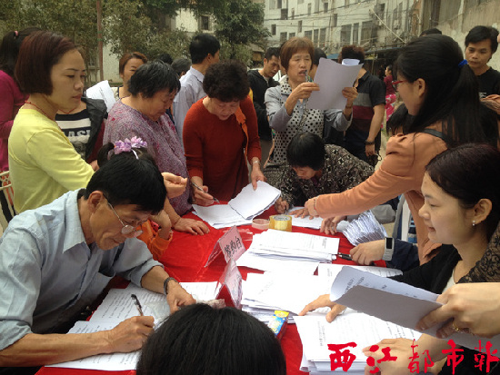 ????紅嶺舊住宅小區的綜合整治改造,是梧州市棚戶區改造的重點項目,該項目將于近期開工。對于小區改造工作,租戶們都十分歡迎,紛紛在協議上簽名。本報記者 謝韻/攝