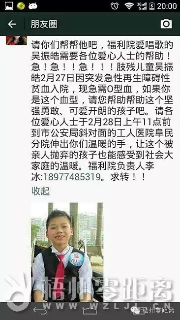 幫助吳振皓的消息在微信朋友圈廣泛轉發。