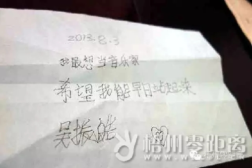 ????◆疾病讓他失去了自由,可是,在這位堅強的男孩卻從未放棄過對夢想的追求。吳振皓非常熱愛歌唱,曾經到南寧、北京等地參加唱歌比賽,美術作品也曾在香港參加拍賣會。2014年,他還參加了CCTV《非常6+1》廣西選拔賽,獲得廣西賽區復賽資格;也獲得過第六屆“青春飛揚”中華青少年藝術人才展評比賽的金獎。