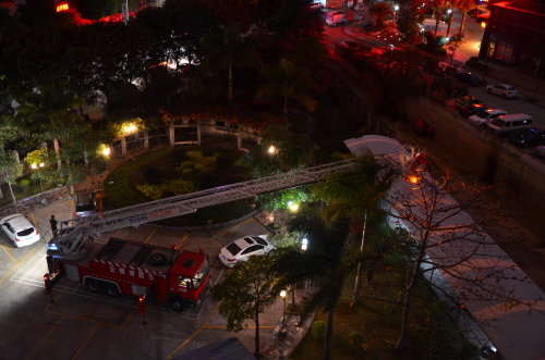 ????梧州零距離網訊 (圖文/記者 覃燕霞)2月28日晚20時,在梧州日報社大院內,市公安局消防支隊的消防官兵使用云梯消防車摘除樹上的馬蜂窩。