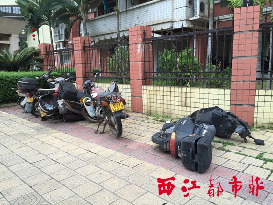 ??? 西江都市報訊(記者 楊珊)“僵尸車”的存在,不僅占用公共資源,而且有損市容。近日,有網(wǎng)友在梧州零距離網(wǎng)站網(wǎng)絡(luò)問政平臺反映,在長洲區(qū)梧桐新苑正門小廣場,停放有十多輛破爛的“僵尸”摩托車。對此,長洲交警大隊回應(yīng)稱,小區(qū)物業(yè)可與社區(qū)一起清理車輛,還可以向交警部門請求提供協(xié)助。
