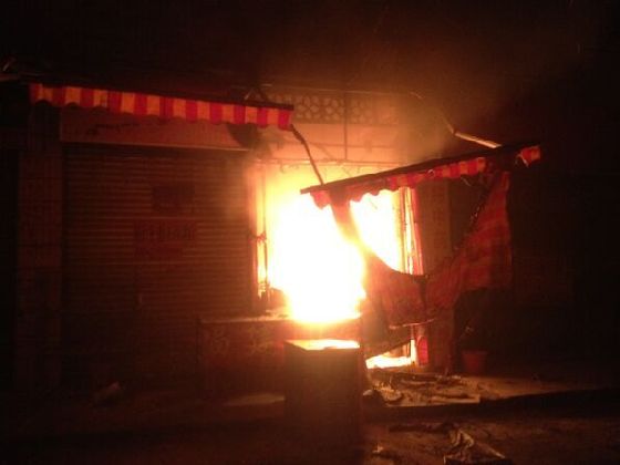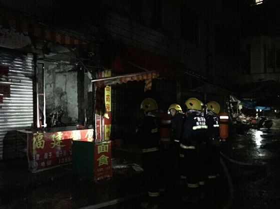 ????消防官兵到達現場后發現,起火商鋪位于新興市場靠近環衛局的一條小通道中,道路狹窄,環境復雜,起火鋪面的卷簾門已經被燒塌,火光沖天,火勢正伴著濃煙迅速向樓上蔓延。消防官兵立刻展開救援行動,同時派出偵查小組對火情進行偵查,警戒疏散小組負責警戒和疏散可能受威脅群眾。