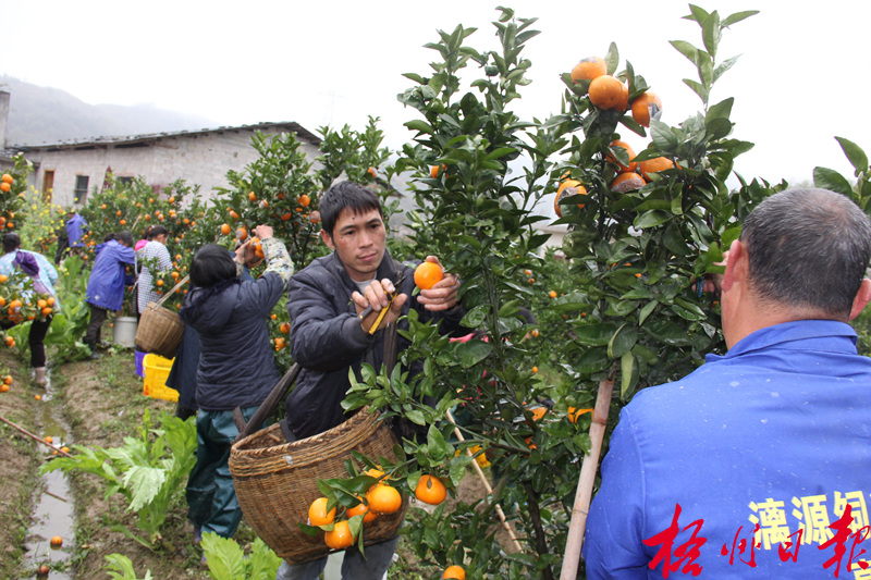 3月6日,蒙山縣新圩鎮古定村古皮組果農在采摘茂谷柑。