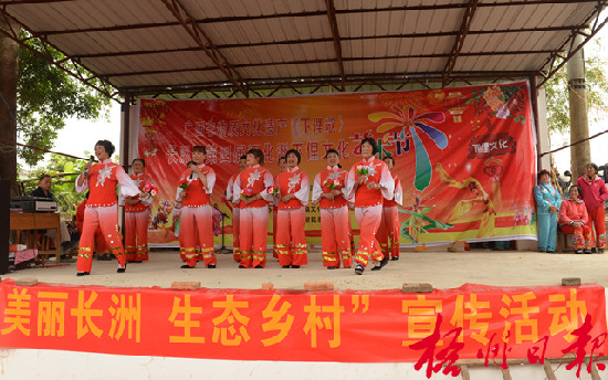 ????“你栽果樹(shù)我種花,你掃大路我掃家。環(huán)境清潔空氣鮮,創(chuàng)優(yōu)就靠你我他。垃圾污水處理好,人畜糞便無(wú)害化。齊心合力見(jiàn)行動(dòng),創(chuàng)優(yōu)就靠你我他。”3月5日,在第四屆長(zhǎng)洲下俚文化節(jié)上,農(nóng)民自發(fā)創(chuàng)作生態(tài)鄉(xiāng)村題材層出不窮,千年楚調(diào)唱出時(shí)代新聲。通過(guò)山歌、戲劇、詩(shī)歌等群眾喜聞樂(lè)見(jiàn)的地方特色文藝來(lái)宣傳生態(tài)鄉(xiāng)村活動(dòng),是長(zhǎng)洲鎮(zhèn)長(zhǎng)期摸索出來(lái)的工作辦法。