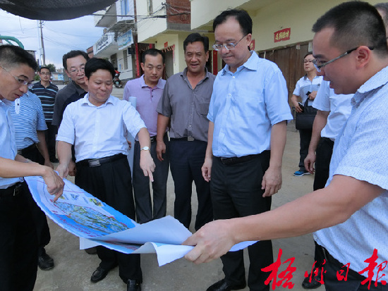 市委書(shū)記黃俊華(右二)到長(zhǎng)洲鎮(zhèn)泗洲村調(diào)研新農(nóng)村建設(shè)。