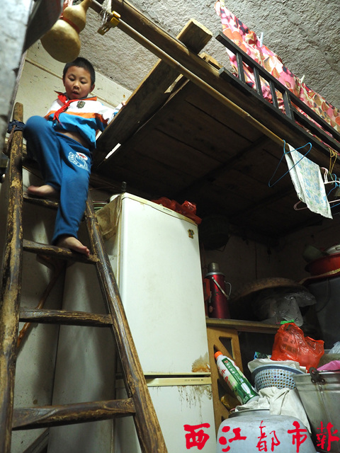 在舊居,小孫子黃焱每次睡覺都要爬著木梯上閣樓。 |