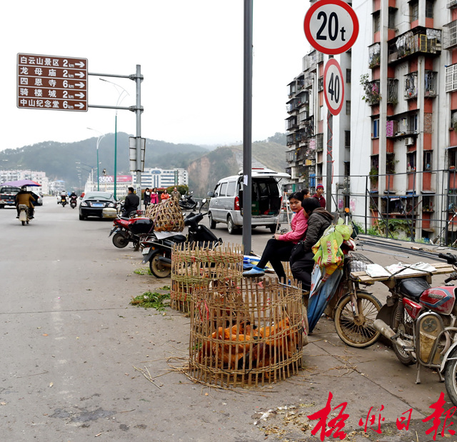 ????該路段是車流、人流密集的路段。一些流動商販不管車輛、行人往來,趁沒有監管人員就抓住“時機”,把家禽等擺到路口擺賣,既弄臟周圍環境,又影響出行,讓附近居民怨聲載道。 孟亞西 攝