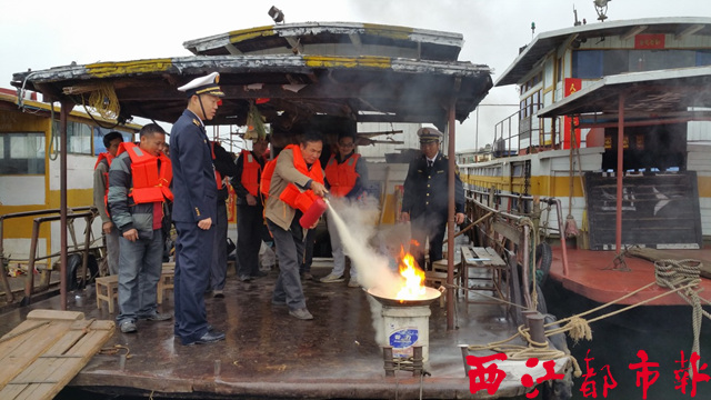 ??? 3月11日,赤水港辦事處在人和渡口組織開展了一次消防、救生演習,共9艘客渡船、12人參加。演習模擬客渡船失火和航行中有乘客落水,船員展開救援及乘客自救的情景。(西江都市報記者 吳艷虹 通訊員 章特 攝影報道)