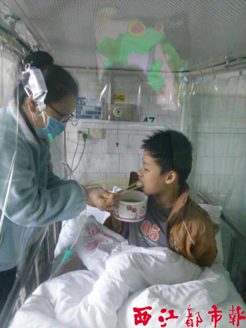 ????李冰表示,自2月27日病發住院后,吳振皓已經得到100多名愛心人士輪排捐贈血小板、血漿,也得到了很多爰心團隊和個人的捐款。元宵節的時候,梧州市交通局捐贈2000元給小振皓,并由工作人員將湯圓送到他的病床上,讓小振皓過了—個特別的元宵佳節。同時還有許多小朋友將過年時收到的壓歲錢捐獻給小振皓。這些愛心人士在奉獻愛心的同時也鼓勵著小振皓更堅強地與病魔作抗爭。