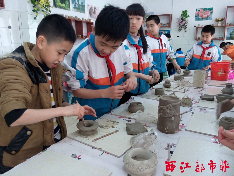 ????近日,在萬秀區(qū)青少年活動(dòng)中心五坊路小學(xué)點(diǎn)的一樓,來自該校五年級(jí)的學(xué)生三三五五地圍坐在一起,雙手“捧”著一個(gè)勻速旋轉(zhuǎn)的陶泥進(jìn)行陶藝制作。五年級(jí)學(xué)生黃景遐學(xué)習(xí)陶藝有一兩年了,而除了參加陶藝班,她還參加了舞蹈班,在她看來,勞逸結(jié)合為自己的學(xué)習(xí)帶來了幫助。