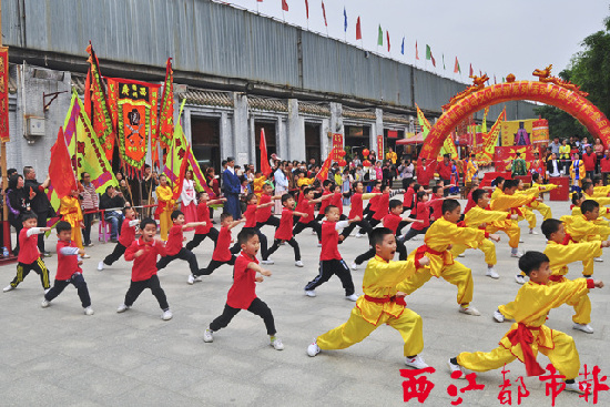 ??? 3月22日農(nóng)歷二月初三是文昌誕民俗日,梧州市龍母廟舉行首屆學(xué)子智慧啟蒙禮,50位練習(xí)武術(shù)的孩子和梧州漢服群團體成員參加了儀式。 歐陽燦/攝