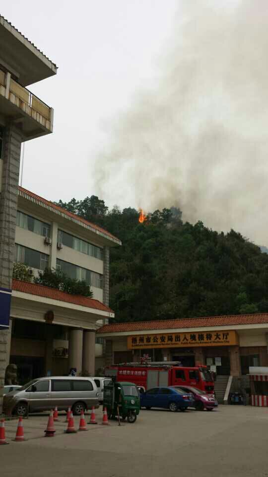 今日中午12時,群眾拍攝到的復燃山火,消防車已經進駐辦公區域待命。???