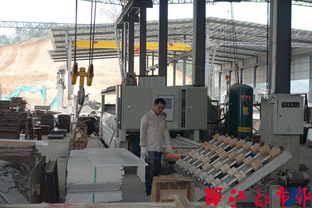 ????3月24日,在岑溪市馬路水平石材加工業優化提升示范工程項目中,6臺大型石材切割機器正開足馬力運作。據項目業主覃開勇介紹,該項目總投資10億元,規劃用地面積1079畝,總建筑面積34萬平方米,屬石材產業園區的建設項目之一。