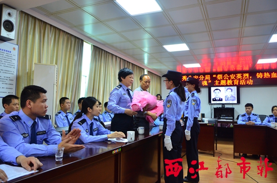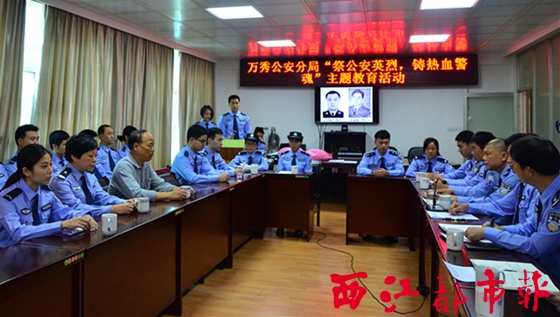 ??? 西江都市報訊 (記者 黃海志 通訊員 周靜 周海) “我將用實際行動打擊違法犯罪、服務人民群眾,全力捍衛公安英烈用生命換來的平安。”聽完烈士的先進事跡后,萬秀公安分局的年輕民警肖琦莊嚴做出承諾。