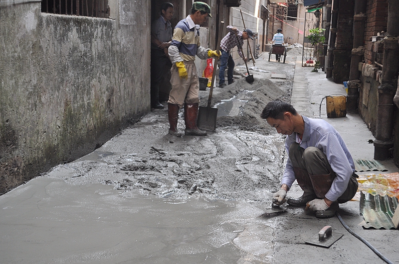 ????萬秀區城南街道辦事處主任楊戰強介紹,社區和街道辦事處在排查轄區的各類環境衛生方面的“老大難”問題時,了解到廣仁路52號存在的問題,城南街道辦便多方籌款8000多元,于3月28日正式施工,對廣仁路52號破爛道路進行硬化,并在疏通堵塞的排污渠的基礎上,在排污渠上方鋪設水泥蓋板。