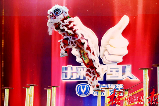 ????初賽當(dāng)天,鄧彬光的舞獅節(jié)目被安排在第一個節(jié)目出場。由于場地有限,梅花樁由平時的“一”字形改為“七”字形,但這些臨場變化并沒有影響到鄧彬光他們的演出。