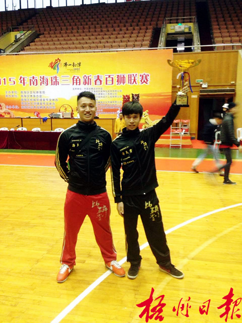 ????《出彩中國人》中的兩位表演者來自塘步鎮(zhèn)禤洲村,是一對叔侄,叔叔叫鄧植倫,今年24歲,侄子叫鄧彬光——這是按輩分排的,其實鄧植倫的年紀(jì)比鄧彬光還小一歲。他們8歲的時候進入禤洲獅隊開始學(xué)舞獅,10歲的時候進行高樁舞獅訓(xùn)練。由于他們刻苦訓(xùn)練,用心琢磨各種獅子的神態(tài),創(chuàng)新各種動作,把獅子舞活了,在各種大賽中表現(xiàn)突出取得了多種大獎。