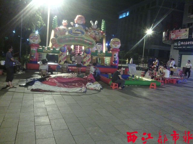 ????西江都市報報料熱線報道 (記者 廖雙艷) 近日,市民張女士向本報反映,在棗沖小區億佳超市門前廣場,有人筑了一個近10米高的游樂設施,每天晚上7點到9點開放營業,但是經營者沒有辦理相關證件,她認為,該游樂設施存在一定的安全隱患。
