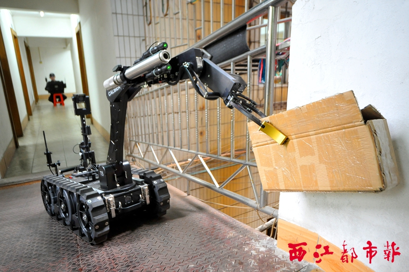 ????自去年7月加入梧州“拆彈部隊”以來,T5排爆機器人先后參加了“八桂·2014”反恐演練和去年9月25日在梧州機場舉行的多警種反恐演練,梧州市民最近一次見識其手段,則是不久前發生的“炸彈”烏龍事件。