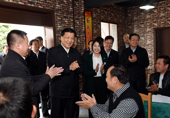 4月11日至13日,中共中央政治局常委、中央書記處書記劉云山在廣西調研。這是4月11日,劉云山在梧州市萬秀區鳳凰村參觀中共廣西第一個農村黨支部紀念館。新華社記者 饒愛民 攝