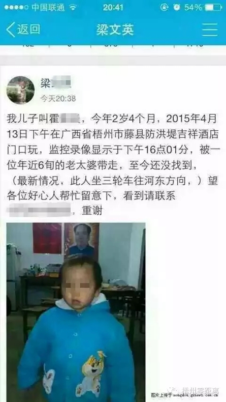 ????霍先生報案后,他的家人也通過QQ、微博、微信朋友圈、論壇等網絡渠道發布了尋人啟事,并且附上了孩子和霍先生從警方處拿到的視頻截圖。