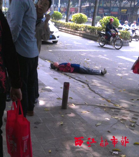 ????當記者聞訊趕到現場時,看到有兩名熱心市民正攙扶老人,老人表情較為痛苦。隨后,蝶山移動警務站的民警和急救人員先后到達現場,將老人送往梧州市紅會醫院進行救治。