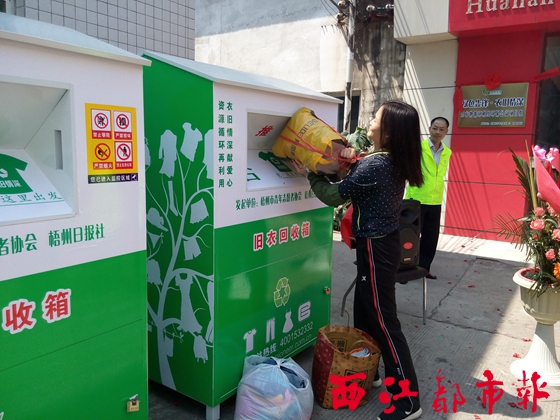 ??? 西江都市報訊(記者 吳艷虹)4月16日上午,梧桐新苑小區里來了一位“新客人”——舊衣回收箱。據悉,由梧州市青年志愿者協會與梧州日報社共同發起的“綠色先鋒·衣舊情深”舊衣物循環利用大型環保公益行動,將于5月4日前啟動。在啟動儀式前,150個舊衣回收箱將分批投放到梧州市內小區、社區、學校及企業,用以回收舊衣物,然后通過公益捐助或環保再生等方式進行處理。
