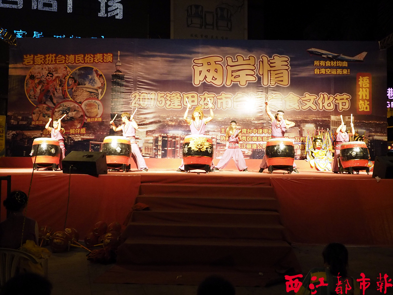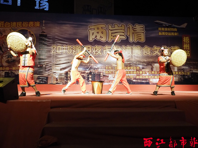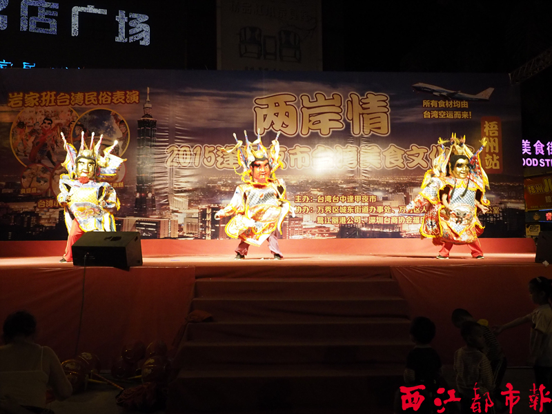 4月17日晚上,喜迎“三月三”民歌節.兩岸情文藝聯歡晚會,在鴛江麗港廣場小舞臺舉行。當晚,由來自臺灣的巖家班民俗表演藝術團與萬秀區社區文化藝術團同臺演出,在晚會上,兩岸演員通過各自獨具民族特色的舞蹈歌曲表演,共同演繹兩岸情義,并為正在鴛江麗港廣場舉辦的臺中逢甲夜市臺灣美食文化節助興,讓游客在品嘗臺灣美食的同時,也能享受寶島的民俗文化。陳健新/攝