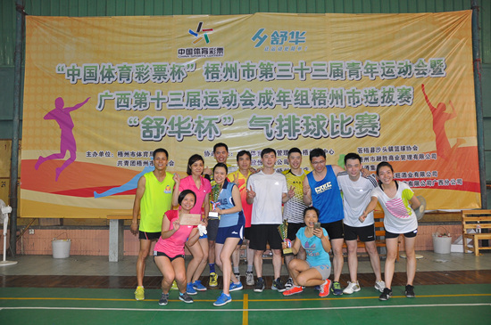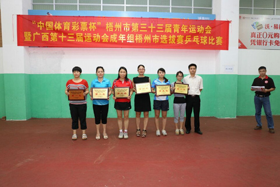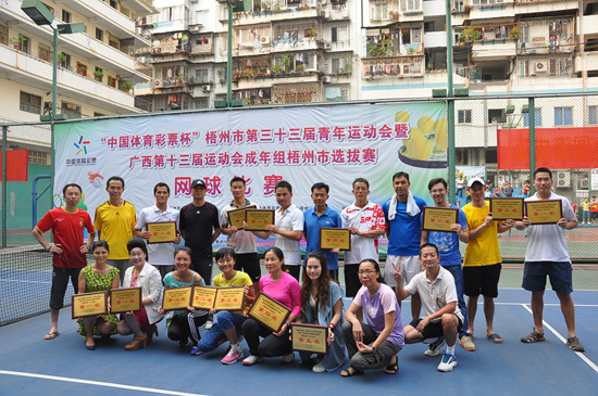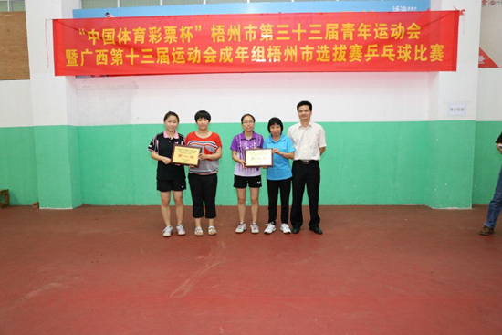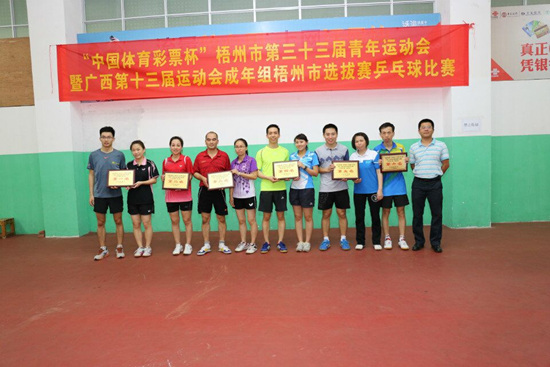 梧州市體育局副局長(zhǎng)譚漢忠混雙獲獎(jiǎng)選手合影留念
