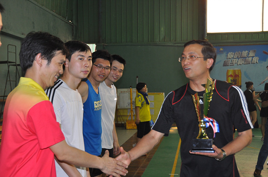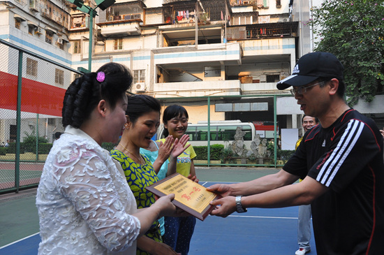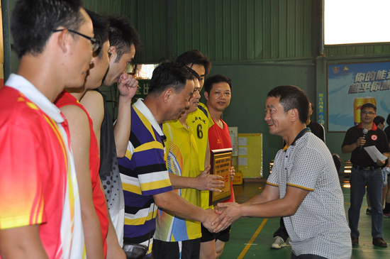 廣西梧州誠(chéng)康體育設(shè)施有限公司總經(jīng)理陳萬里先生為獲獎(jiǎng)隊(duì)伍頒獎(jiǎng)